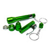 - Максимальна непомітність і мобільність. Зовні зелений девайс виглядає як звичайний ручний ліхтарик. Знімна сталева кліпса дає змогу зафіксувати його на кишені, лямці рюкзака або ремені, а кільце з ланцюжком зручно використовувати для носіння разом із ключами.